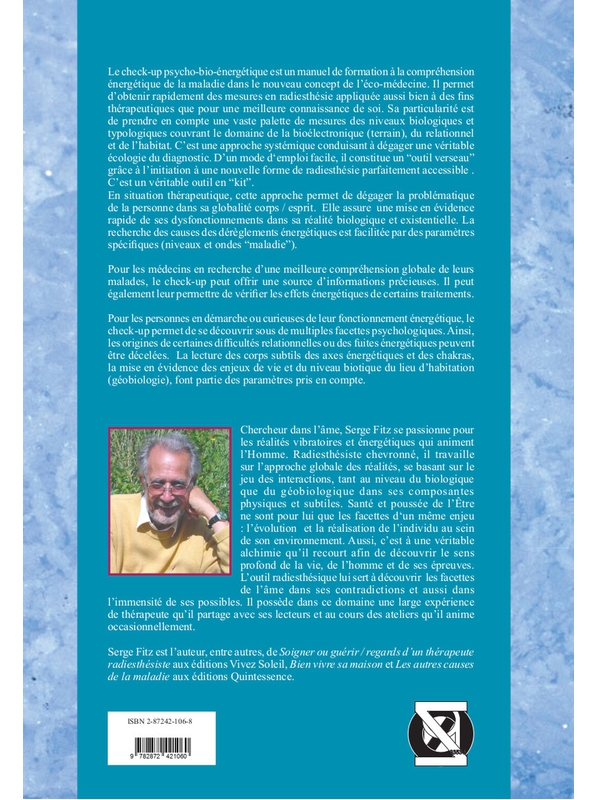 Un manuel de formation à la compréhension énergétique de la maladie... D’un mode d‘emploi facile, il constitue un « outil globalisant » éclairant. Le check-up psycho-bio-énergétique est un manuel de formation à la compréhension énergétique de la maladie dans le nouveau concept de l'éco-médecine. Il