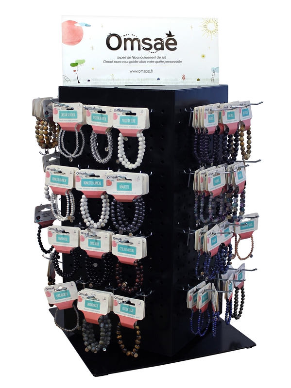 Tourniquet de comptoir en métal noir, pivotant. 48 broches picots zinguées avec embouts noirs de 80 mm utile fournies. Format : 38 x 38 x 73,5 cm.