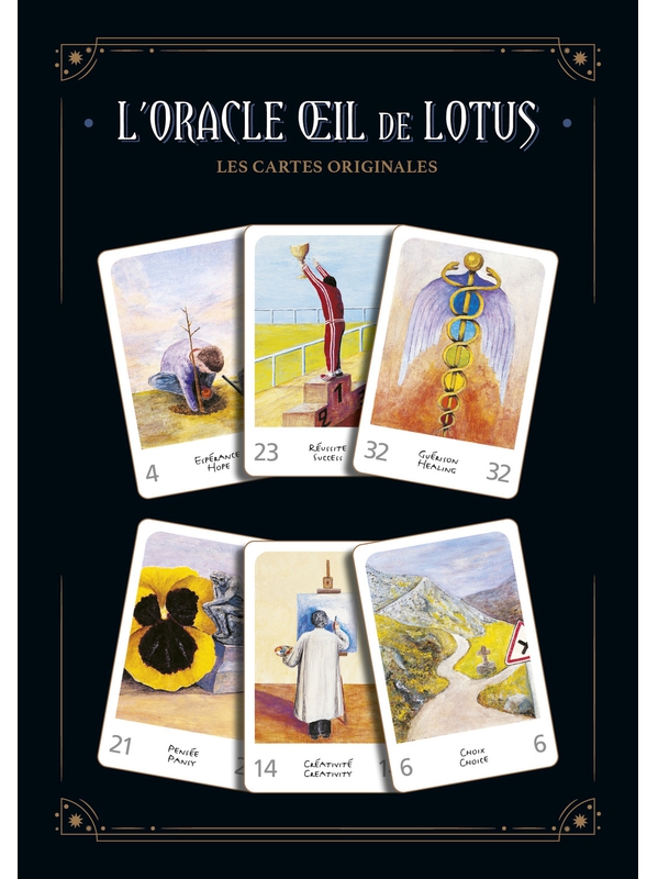 L’Oracle Oeil de Lotus repose sur un symbolisme fort : il rapproche la représentation par excellence de la clairvoyance – l’oeil – avec le lotus frontal, chakra de l’intuition qui donne accès à la connaissance. Ainsi, par ses images originales et explicites, l’Oeil de Lotus vous aidera à trouver des