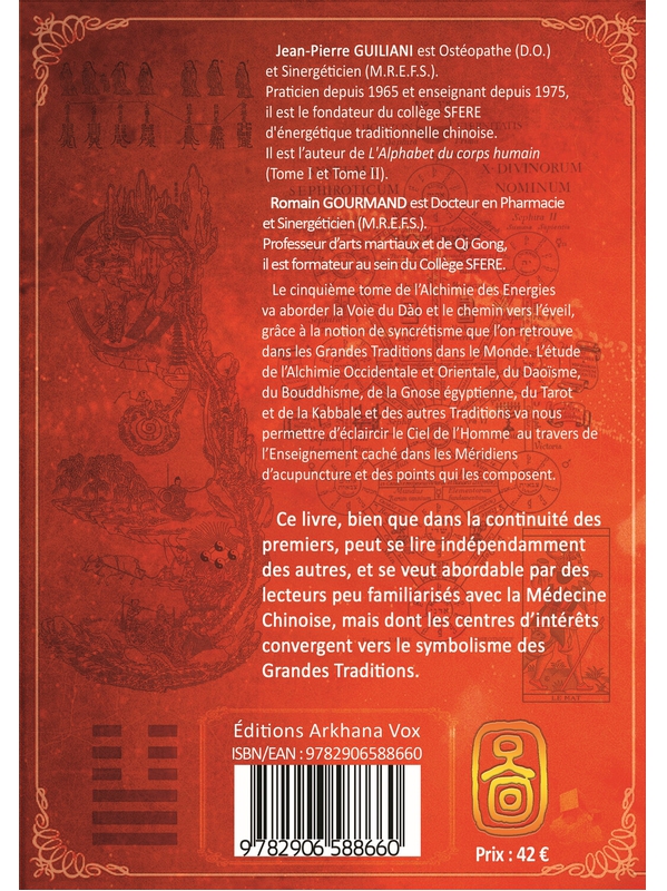 Le cinquième tome de l’Alchimie des Énergies va aborder la Voie du Dào et le chemin vers l’éveil, grâce à la notion de syncrétisme que l’on retrouve ans les Grandes Traditions dans le Monde. L’étude de l’Alchimie Occidentale et Orientale, du Daoïsme, du Bouddhisme, de la Gnose égyptienne, du Tarot e