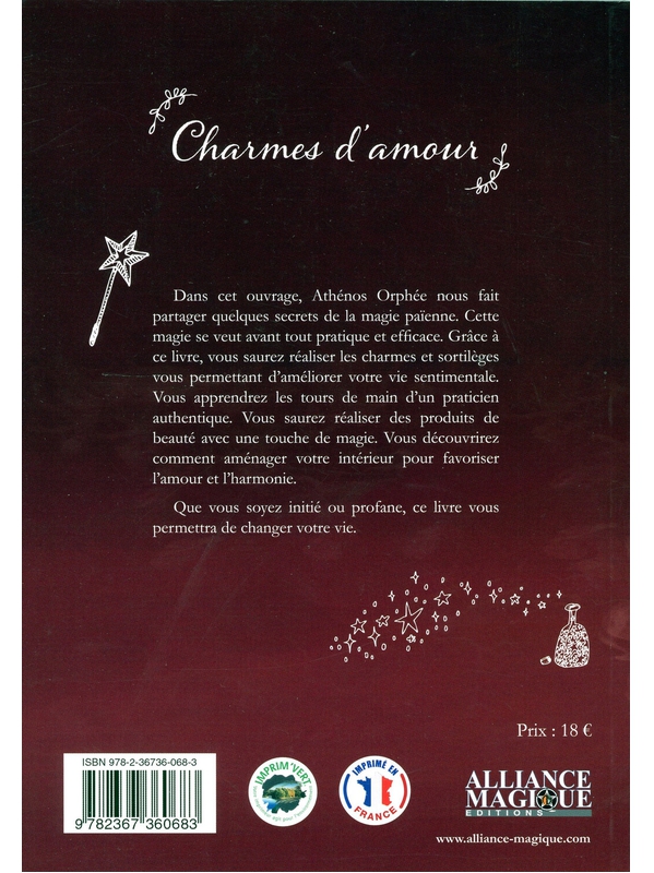 Dans cet ouvrage, Athénos Orphée nous fait partager quelques secrets de la magie païenne. Cette magie se veut avant tout pratique et efficace. Grâce à ce livre, vous saurez réaliser les charmes et sortilèges vous permettant d'améliorer votre vie sentimentale. Vous apprendrez les tours de main d'un p