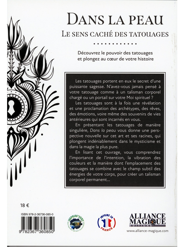 Embarquez pour un voyage chamanique au coeur de votre conscience Les tatouages portent en eux le secret d'une puissante sagesse. N'avez-vous jamais pensé à votre tatouage comme un talisman corporel chargé, ou à un portail sur votre Moi spirituel ? Les tatouages sont à la fois une révélation et une p