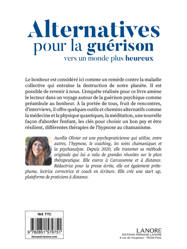 Le bonheur est considéré ici comme un remède contre la maladie collective qui entraîne la destruction de notre planète. Il est possible de revenir à nous. L’enquête réalisée pour ce livre amène le lecteur dans un voyage autour de la guérison psychique comme préambule au bonheur. À la portée de tous, fruit de rencontres, d’interviews, il offre quelques outils et chemins alternatifs comme la médecine et la physique quantiques, la méditation, une nouvelle façon d’aborder l’enfant, les clés pour choisir un bon psy et être résilient, différentes thérapies de l’hypnose au chamanisme.Olivier Aurélie Voir moins
