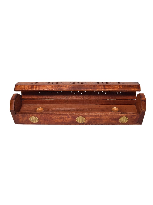 Boîte porte-encens en bois motif fleur de vie