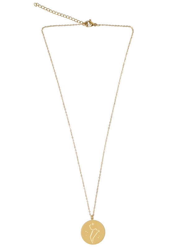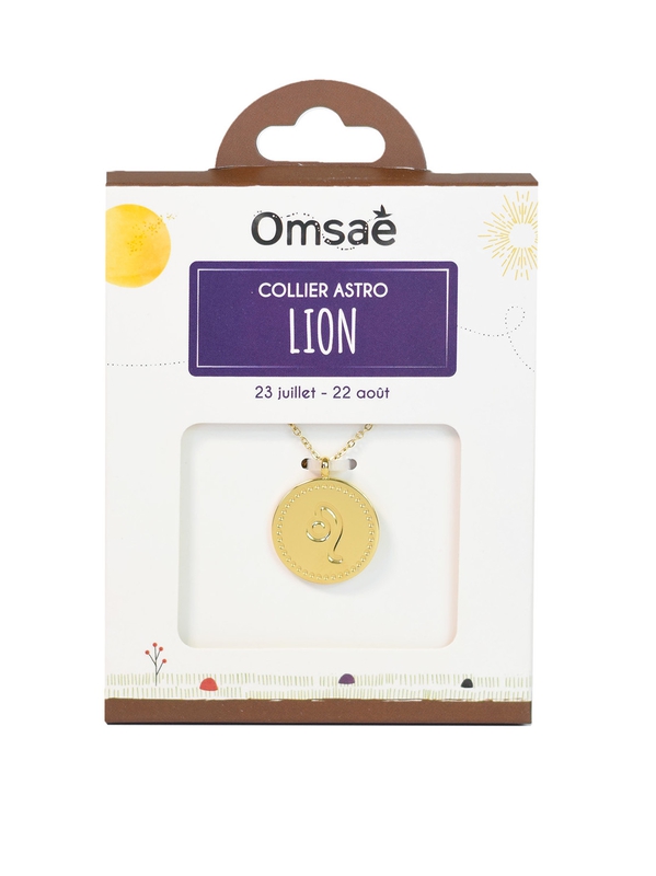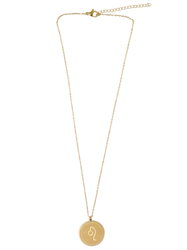 Collier composé d'une médaille gravée et d'une chaîne en acier inoxydable. Médaille gravée au recto et au verso avec le signe et la constellation Lion. Chaîne ajustable d'une longueur de 40-45 cm.
