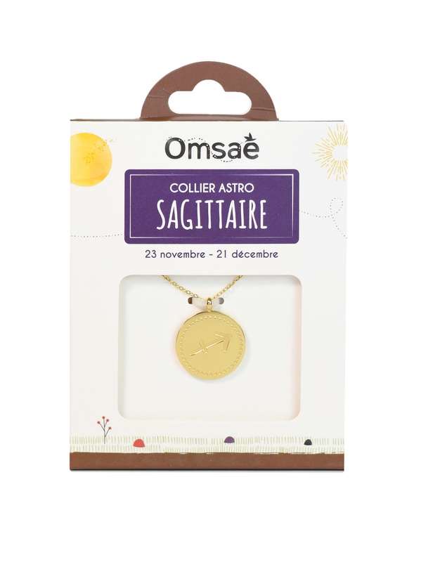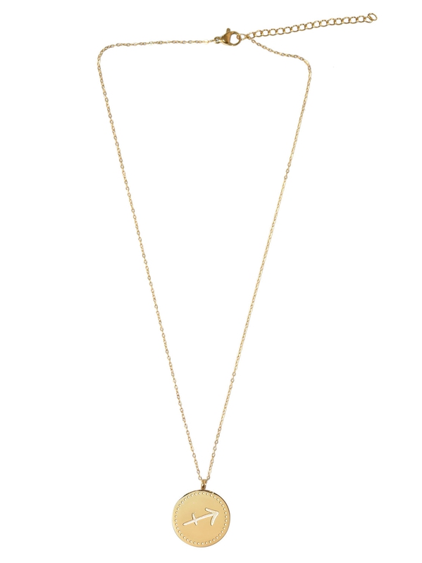 Collier composé d'une médaille gravée et d'une chaîne en acier inoxydable. Médaille gravée au recto et au verso avec le signe et la constellation Sagittaire. Chaîne ajustable d'une longueur de 40-45 cm.