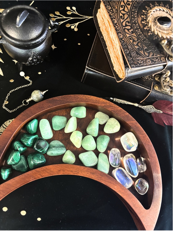 Ajoutez une touche lunaire à votre espace avec ce support en bois en forme de croissant de lune. Evoquant la magie de la Lune, il est idéal pour accueillir vos objets précieux tels que vos pierres, bijoux ou autres accessoires de rituels.