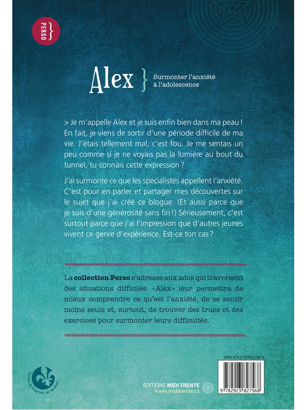 L’anxiété est l’une des émotions les plus fréquentes à l’adolescence. Elle prend de multiples formes et intensités allant de l’inquiétude à l’attaque de panique en passant par l’angoisse chronique ou les phobies sociales. Je m’appelle Alex et je suis enfin bien dans ma peau ! En fait, je viens de sortir d’une période difficile de ma vie. J’étais tellement mal, c’est fou. Je me sentais un peu comme si je ne voyais pas la lumière au bout du tunnel, tu connais cette expression ? J’ai surmonté ce que les spécialistes appellent l’anxiété. C’est pour en parler et partager mes découvertes sur le sujet que j’ai créé ce blogue. (Et aussi parce que je suis d’une générosité sans fin !) Sérieusement, c’est surtout parce que je suis sûre que d’autres jeunes vivent ce genre d’expérience. Est-ce ton cas ? Le blogue d’Alex est un guide pratique qui permet aux ados de mieux comprendre ce qu’est l’anxiété, de se sentir moins seuls et, surtout, de trouver une foule de trucs concrets et d’exercices simples conçus pour les aider à surmonter leur anxiété au quotidien.Parent Nathalie Voir moins