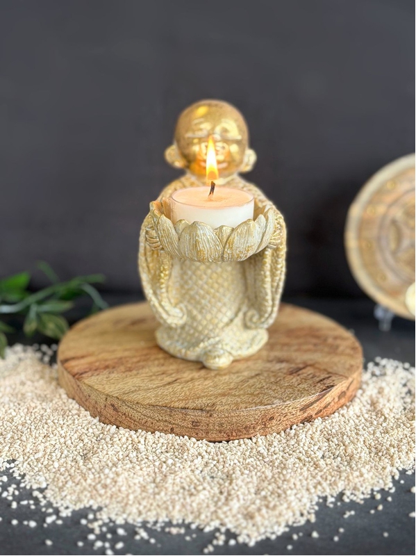 Porte-bougie Moine en Lotus 12,5 cm - Résine - Doré