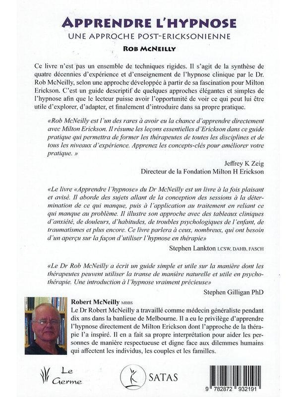 Ce livre n'est pas un ensemble de techniques rigides. Il s'agit de la synthèse de quatre décennies d'expérience et d'enseignement de l'hypnose clinique par le Dr. Rob McNeilly, selon une approche développée à partir de sa fascination pour Milton Erickson. C'est un guide descriptif de quelques approc