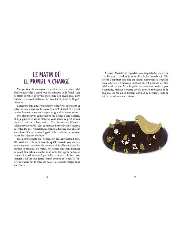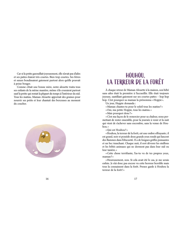 Premier tome d’une série qui en compte six et qui racontent les aventures d’une petite alouette et ses compagnons de la forêt. Née sans ailes et avec des pattes trop courtes, elle est abandonnée par sa mère, contrainte de penser à ses autres oisillons. Hoppie est alors prise en charge par le sage hi Voir plus