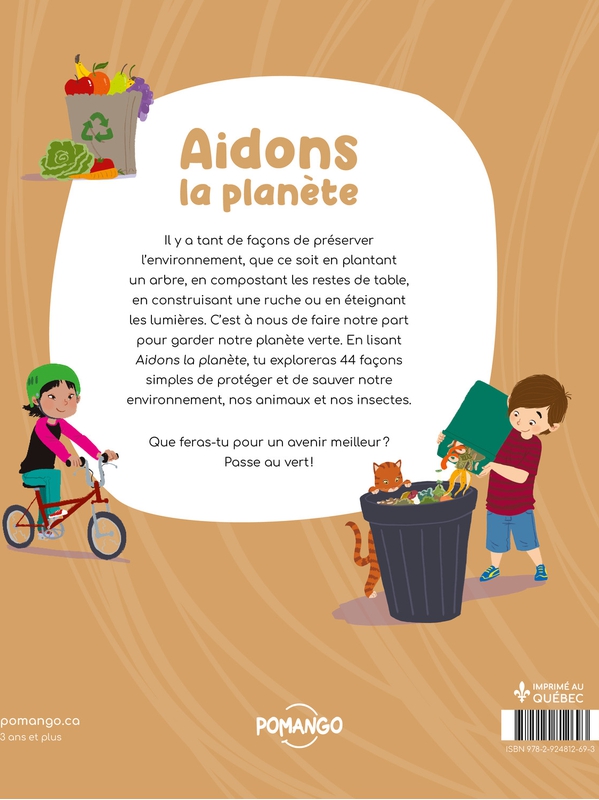 Il y a tant de façons de préserver l’environnement, que ce soit en plantant un arbre, en compostant les restes de table, en construisant une ruche ou en éteignant les lumières. C’est à nous de faire notre part pour garder notre planète verte. En lisant Aidons la planète, tu exploreras 44 façons simp