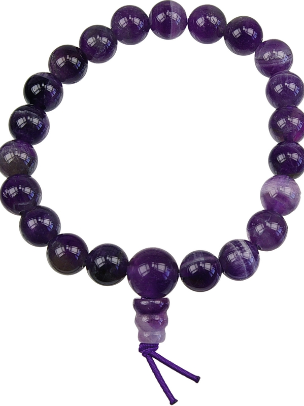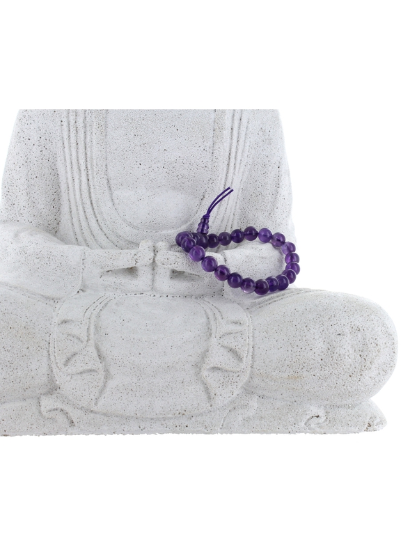 Bracelet élastique composé de perles en pierre d'améthyste. L'améthyste développe l'imagination, la créativité et l'apaisement.