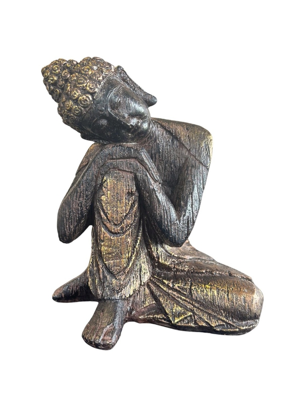 Dans chaque espace, une statue de Bouddha porte le silence du monde. Ni imposant, ni bruyant, sa présence apaise. Dans cette posture, le sage est représenté la tête posée sur la main, plongé dans une profonde méditation symbolisant la recherche intérieure, mais aussi la compassion silencieuse. Façonnée en résine, cette statuette est à placer dans votre intérieur afin d'inviter la paix et la sagesse dans chaque recoin. Orienté vers la porte, il attire la lumière et la chance , dans l'intimité, il guide vos pensées vers la sérénité.