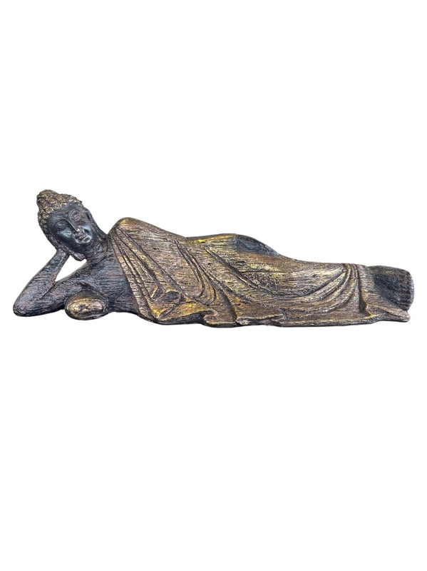 Dans chaque espace, une statue de Bouddha porte le silence du monde. Ni imposant, ni bruyant, sa présence apaise. Sa posture, allongée, représente le moment du Nirvana, symbole de paix et de libération de la souffrance. Allongé, Bouddha incarne la fin du désir et l'atteinte d'une tranquillité profonde, un état d'équilibre parfait entre le corps et l'esprit. Placer cette statuette en résine dans votre intérieur, c'est inviter la paix et la sagesse dans chaque recoin. Orienté vers la porte, il attire la lumière et la chance , dans l'intimité, il guide vos pensées vers la sérénité.
