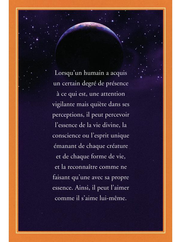 Dans ce tout nouveau jeu de cartes, l'auteur, Eckhart Tolle, a minutieusement choisi les passages les plus riches de son livre à grand succès Nouvelle Terre. Son but est d'amener toute personne à vivre plus en profondeur la sagesse et l'inspiration présentes dans cet ouvrage. Chaque passage sélectio Voir plus
