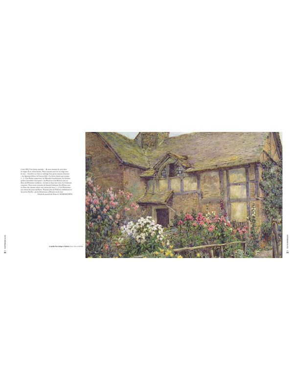 (...) Ces réflexions, qui comparent la vie au cottage à une sorte de paradis sur terre, montrent quelle vision idéalisée du bonheur campagnard était enracinée dans l'imagination des auteurs et artistes du XIXème siècle. Ce livre illustre leur vision : des logements pittoresques entourés de jardins luxuriants aux couleurs vives, habités par des paysans dignes et de charmants enfants, tous représentés dans l'éclat doré d'un éternel soleil. Le fait que la réalité quotidienne, pour la plupart des paysans ordinaires, n'eût rien d'idyllique n'a nui en rien à cette fable romantique que nous avons encore aujourd'hui plaisir à considérer, reflet peut-être d'une disposition à considérer la « campagne » comme un univers autre où règnent l'innocence et l'harmonie. Le terme cottage s'emploie de nos jours par extension pour évoquer un petit logement rural. Mais on l'utilisait autrefois plus spécifiquement pour décrire la demeure de travailleurs sans terre : ouvriers agricoles, artisans ou employés de l'industrie rurale. Peu de cottages antérieurs à 1700 ont survécu , la plupart datent du XVIIIème et du XIXème siècle. Sont présents dans cet ouvrage les artistes suivants : Arthur Claude Strachan, David Woodlock, Edward Killingworth Johnson, Ernest Arthur Rowe, Haynes King, Helen Allingham, Henry John Yeend King, James W. Usher, Kate Barnard, Myles Birket Foster. Au fil du livre, quelques extraits de poèmes, romans de grands écrivains tels que : Robert Louis Stevenson, W.H. Davies, D.H. Lawrence, Dorothy Wordsworth, William Wordsworth, John Clare, Flora Thompson, Oscar Wilde, Charles Dickens, George Eliot.Townsend Gabrielle Voir moins
