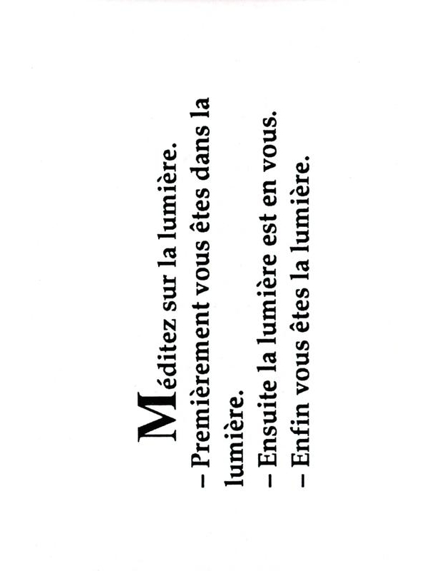 Ce jeu de 108 paroles extraites des enseignements de Sathya Sai Baba a été réalisé dans le but de servir de support de réflexion ou de méditation. On en tirera une carte, quotidiennement, ou dans les moments d'interrogation, de tâtonnement, de doute. Chacun sera alors surpris de découvrir une senten