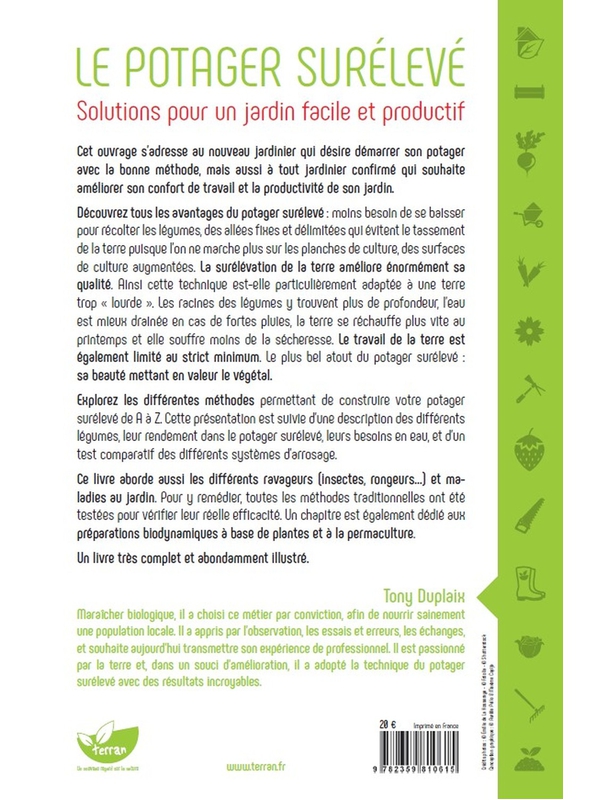 Cet ouvrage s'adresse à tout nouveau jardinier qui désire débuter avec la bonne méthode, mais aussi à tout jardinier confirmé qui désire améliorer son confort de travail et la productivité de son jardin. Vous allez découvrir tous les avantages du potager surélevé : moins besoin de se baisser pour ré Voir plus