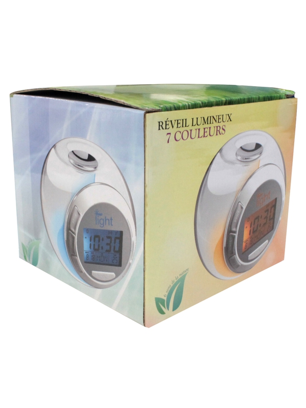 Reveil lumineux 7 couleurs - 6 sons de la nature. Horloge mode 12 ou 24 heures, fonction calendrier. Alarme 6 sons de la nature et changement en 7 couleurs. Fonction rappel de sonnerie à intervalle réglable de 1 à 60 minutes. Thermomètre température ambiante comprise entre 0°C et 50°C. Mode minuteri Voir plus