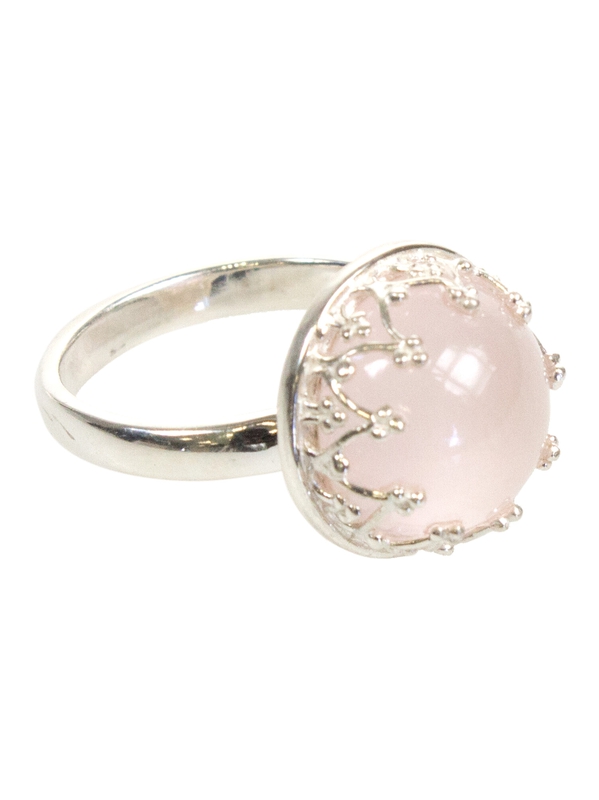 Bague en Argent 925°° avec pierre sertie en Quartz Rose. Diamètre de la pierre : 1,3 cm