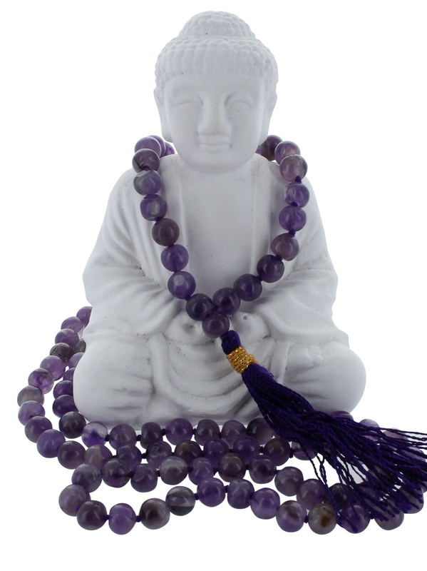 Mala signifie en sanskrit «collier de fleurs» ou «guirlande de perles». Ces colliers sont composés de 108 perles en pierre naturelle. La plus grosse perle (ou «bille de tête») représente la connaissance de la vacuité. Le petit cône qui la surmonte est le symbole de la vacuité elle-même. Diamètre bou Voir plus