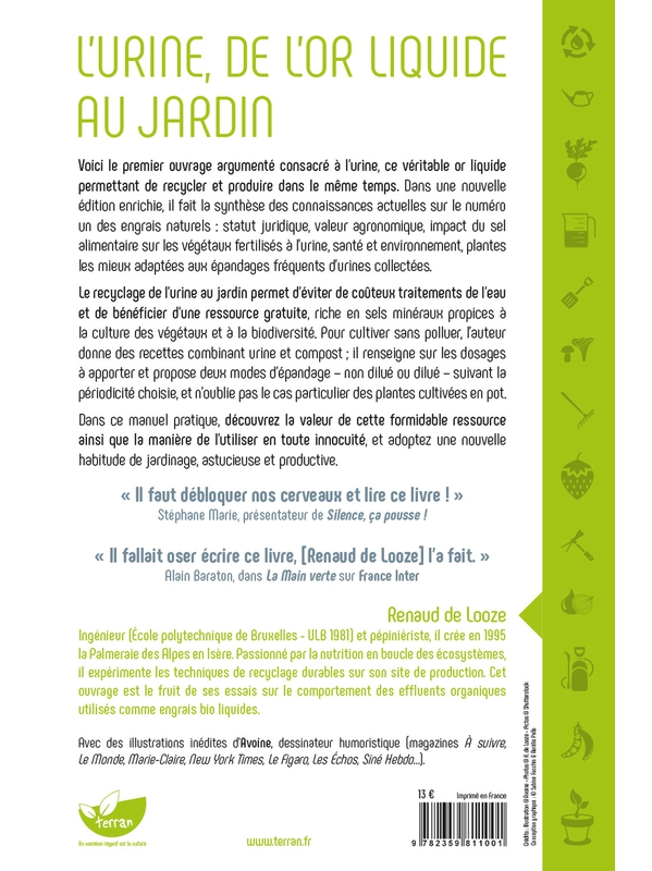 Voici le premier ouvrage argumenté consacré à l’urine, ce véritable or liquide permettant de recycler et produire dans le même temps. Dans une nouvelle édition enrichie, il fait la synthèse des connaissances actuelles sur le numéro un des engrais naturels : statut juridique, valeur agronomique, impa Voir plus