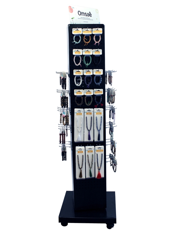 Tourniquet de sol en métal noir, pivotant et avec roulettes. Plaque plexiglas format A4 sur l'une des faces. 78 broches picots zinguées avec embouts noirs de 80 mm utile fournies. Format : 48 x 48 x 165,5 cm