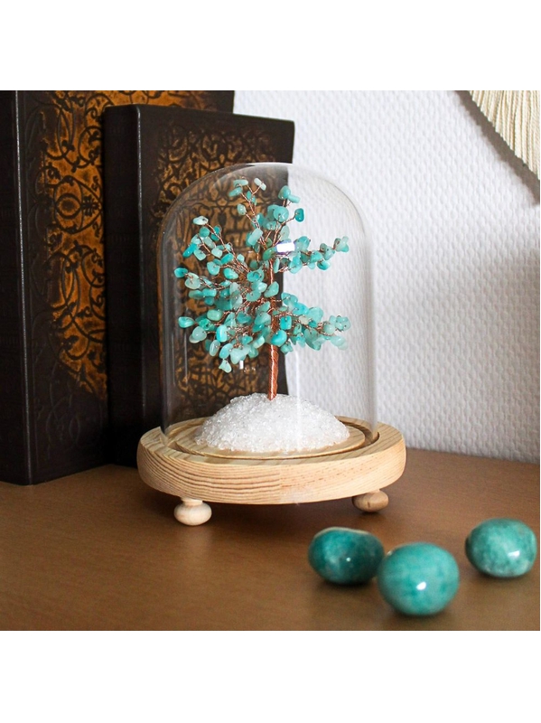 Arbre du bonheur sous cloche en amazonite Omsaé