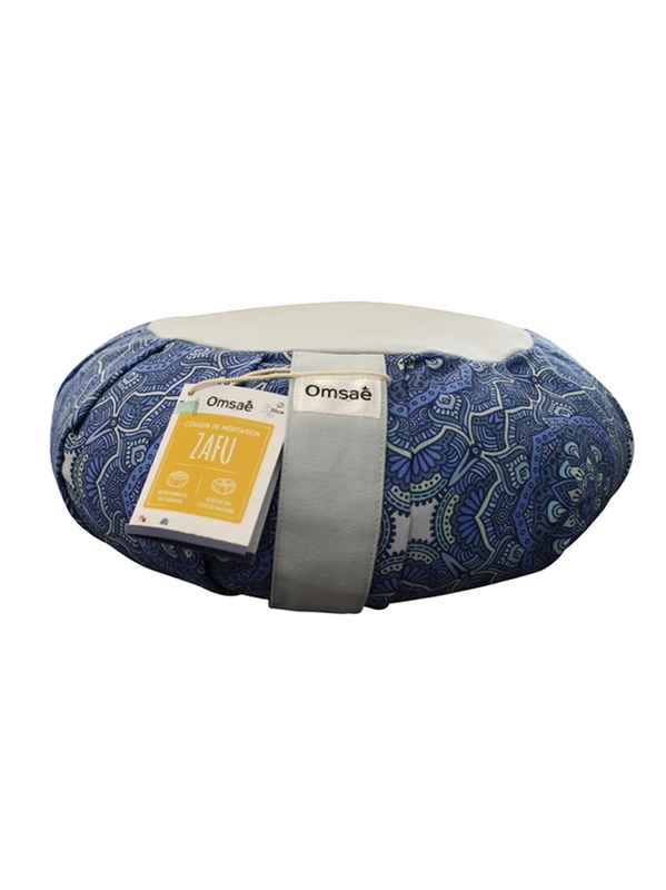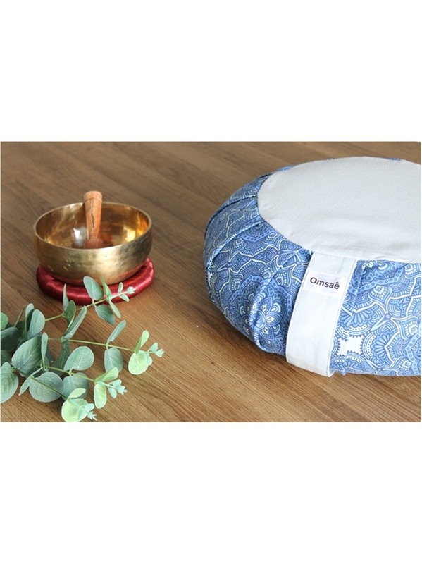 Zafu en sarrasin au motif mandala bleu Omsaé