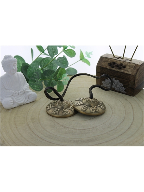 Cymbales tibétaines en bronze petit modèle avec gravure mantra Omsaé