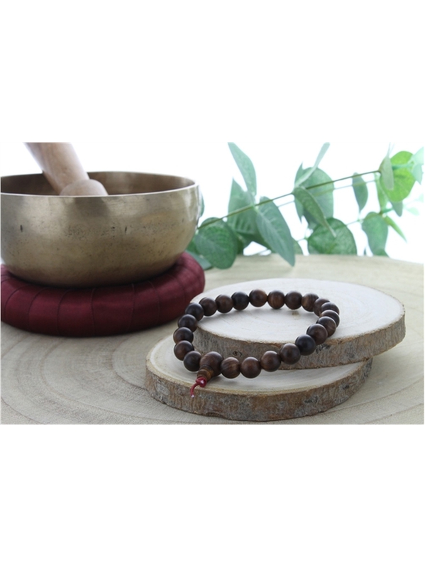 Bracelet élastique composé de perles en bois de rose, traditionnellement utilisé par les peuples tibétains pour éloigner le négatif. Sélectionné pour ses vertus apaisantes,