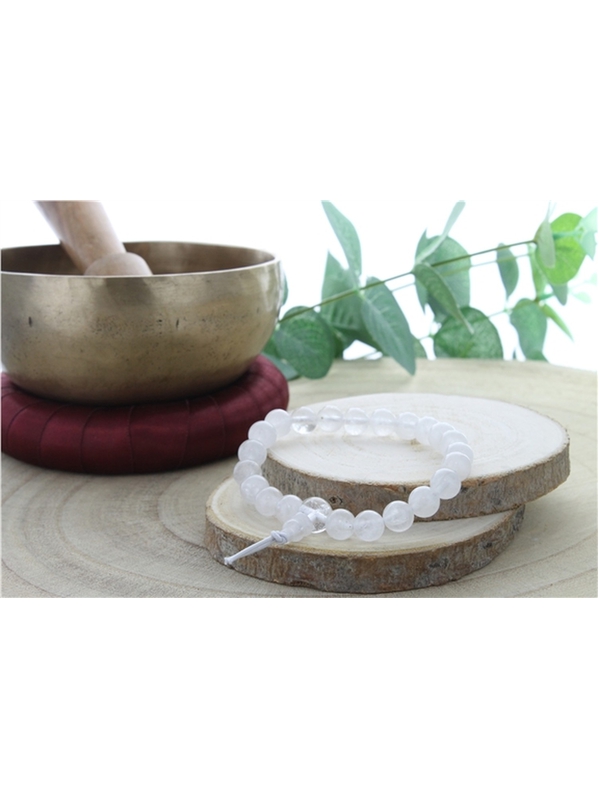 Bracelet élastique composé de perles en pierre de cristal de roche. Le cristal de roche apporte énergie, clarté d'esprit et protection.