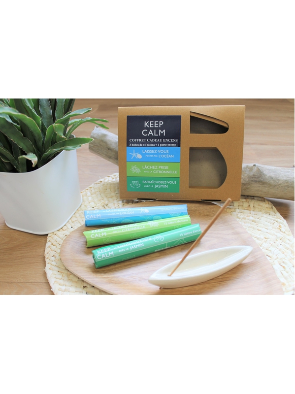 Coffret d'encens en bâton respiration et purification 3 fragrances KEEP CALM.