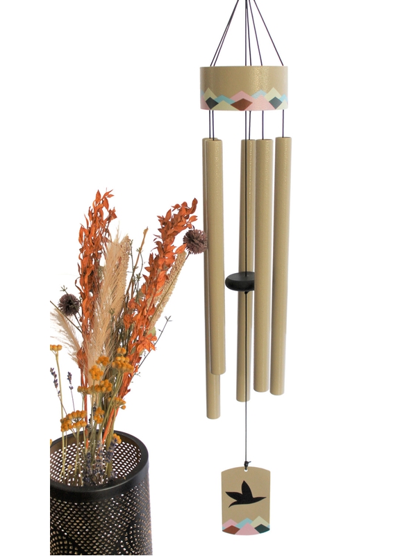 Carillon à vent composé de 5 tubes en aluminium. Il représente la Terre, attire le bon Chi et la prospérité. Chaque tube a été soigneusement accordé pour libérer Voir plus