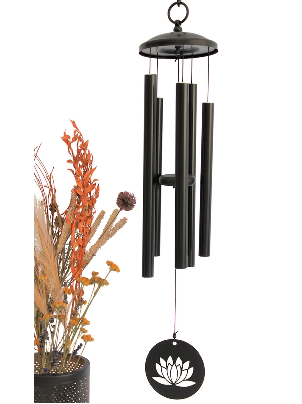 Carillon à vent noir au motif lotus 77 cm Omsaé
