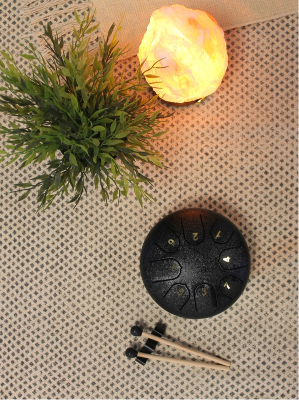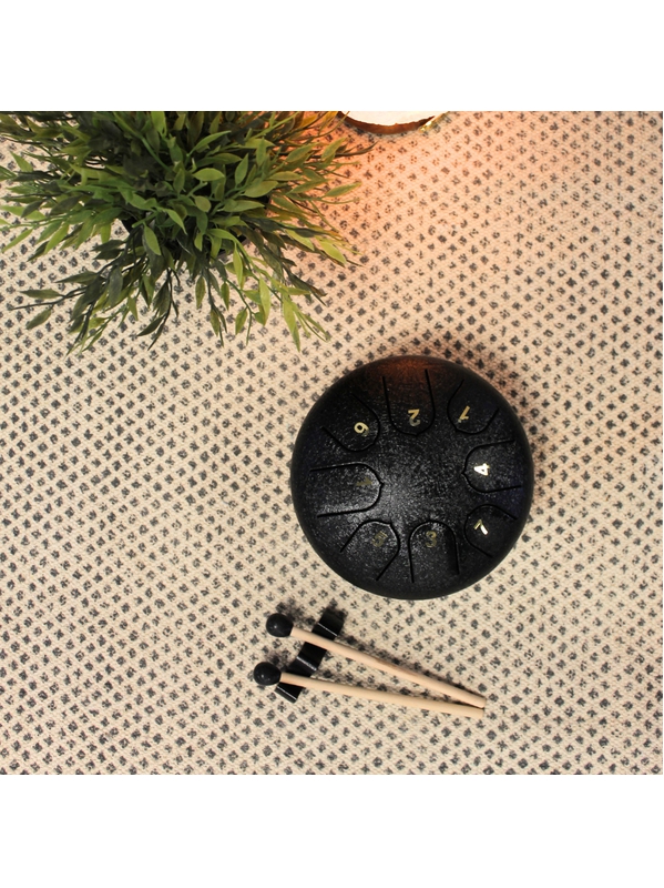 Instrument de musique intriguant, ce mini tongue drum noir accompagnera avec sa mélodie envoûtante les séances de méditation, de relaxation ou de yoga.