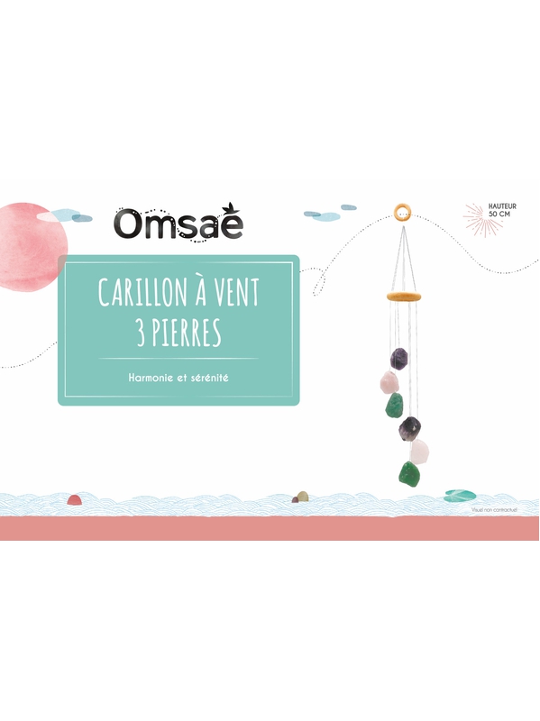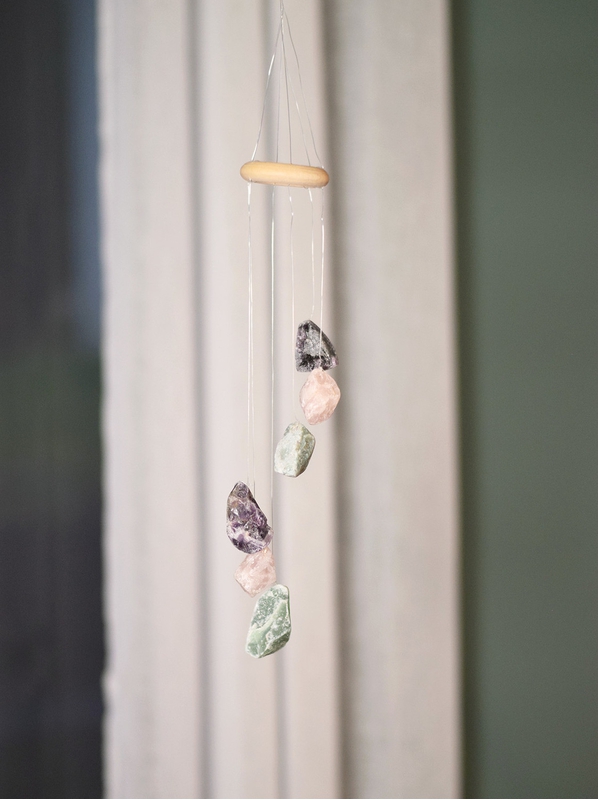 Carillon à vent en pierres brutes de quartz rose, d'améthyste et d'aventurine verte Omsaé