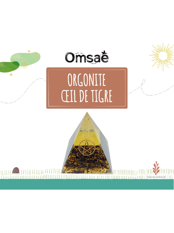 Pyramide orgonite en oeil de tigre avec symbole pentacle Omsaé