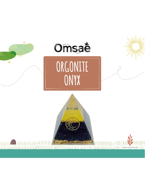 Pyramide orgonite en onyx avec symbole lune Omsaé
