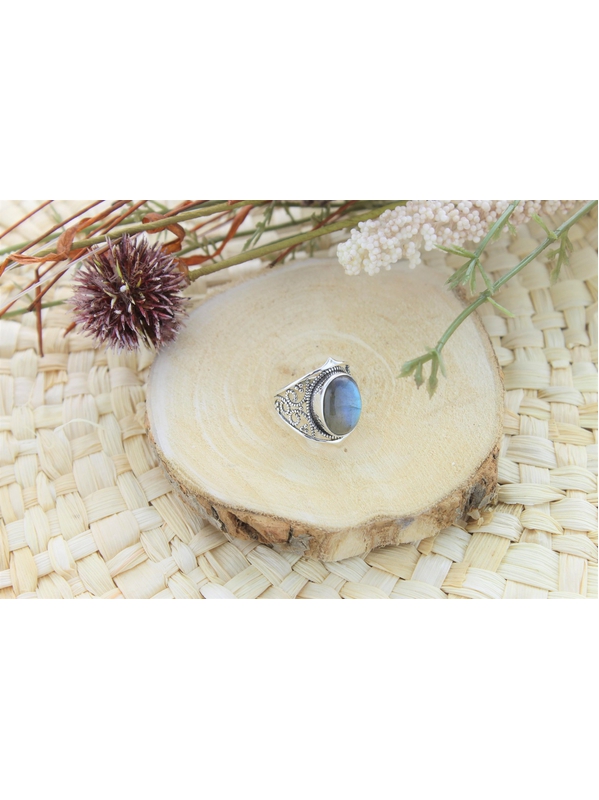 Bague en labradorite et argent modèle Kanti de taille 54 Omsaé