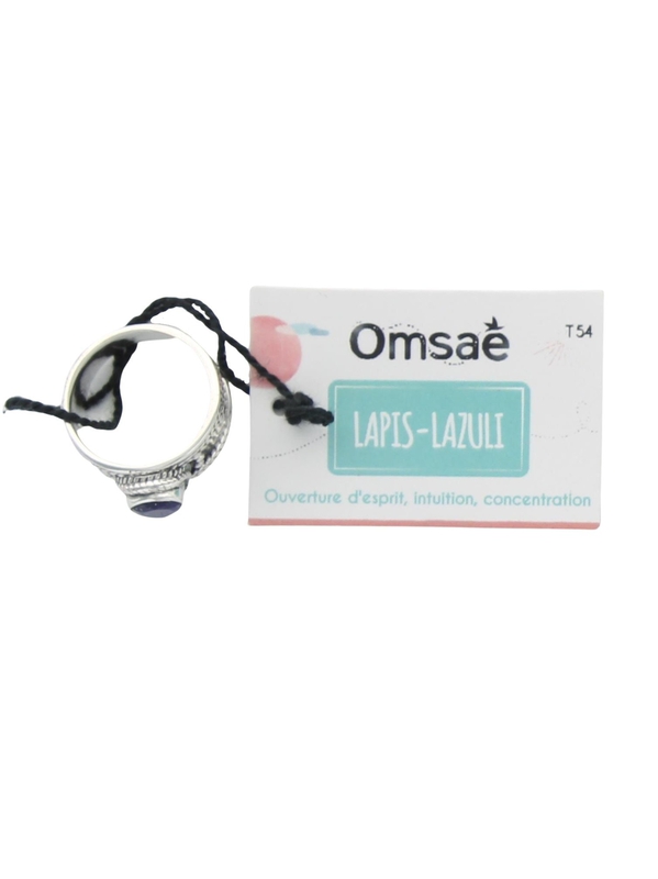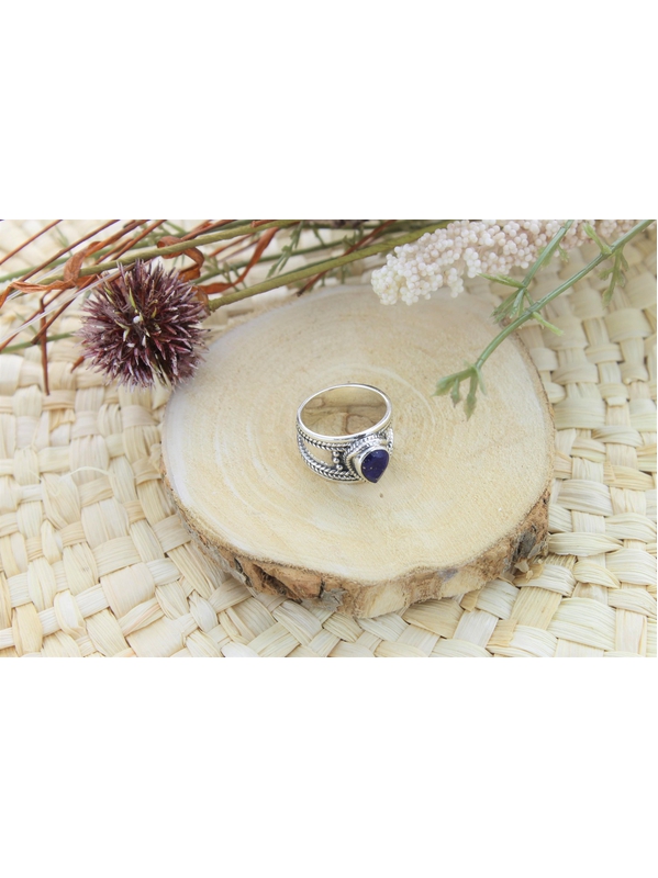 Bague en lapis-lazuli et argent large avec goutte facettée de taille 54 Omsaé