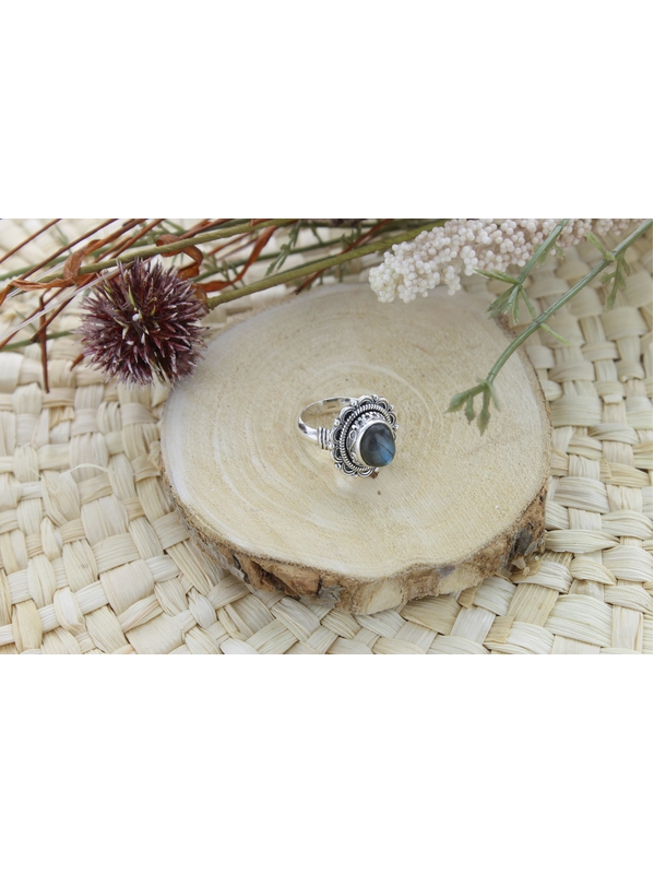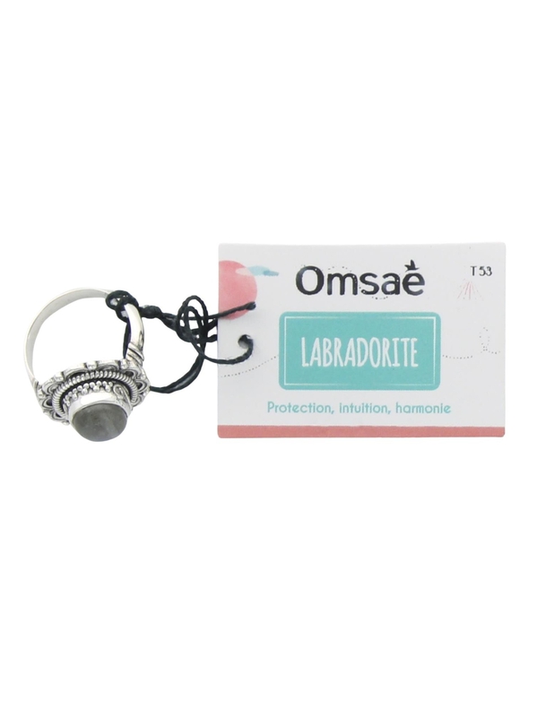 Bague en labradorite et argent à la forme ronde de taille 53 Omsaé