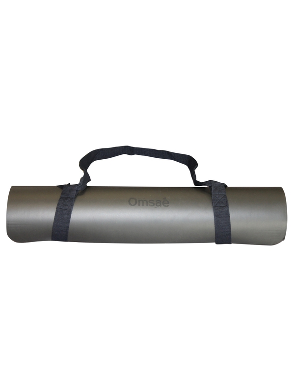 Tapis de yoga noir avec motif mandala composé de 20% de polyuréthane et de 80% de gomme écologique non toxique. Dimensions : 183 x 68 cm, épaisseur 5 mm. Sangle noire de transport fournie.