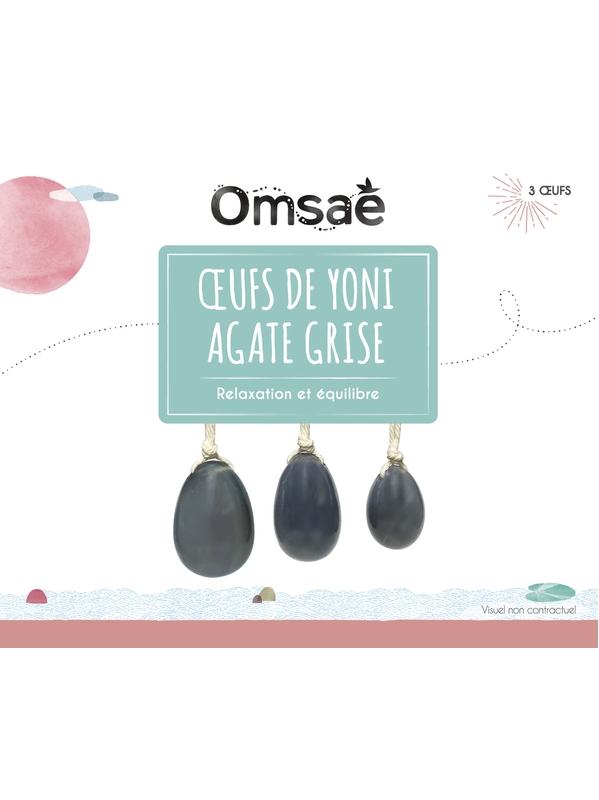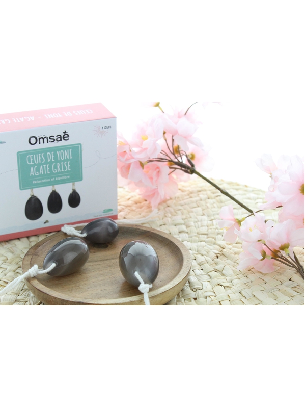 Coffret de 3 oeufs de Yoni Omsaé en agate grise, relaxation et équilibre