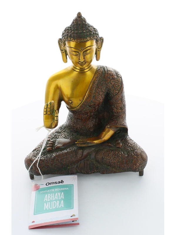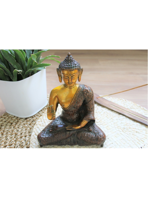 Statuette Bouddha Abhaya mudra en laiton orange antique 20 cm Omsaé