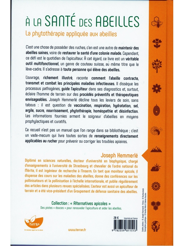 C’est une chose de posséder des ruches, c’en est une autre de maintenir des abeilles saines, voire de restaurer la santé d’une colonie malade. Cependant, ce défi est le quotidien de l’apiculteur. À cet égard, ce livre est un véritable outil multifonctionnel, un genre de couteau suisse, au même titre que le lève-cadre. Il s’adresse à toute personne qui élève des abeilles. L’ouvrage, richement illustré, raconte comment l’abeille contracte, transmet et combat les principales maladies infectieuses. Il dissèque les processus pathogènes, guide l’apiculteur dans ses diagnostics et, surtout, éclaire l’homme de terrain sur des procédés préventifs et thérapeutiques envisageables. Joseph Hemmerlé décline tous les leviers de soin, sans tabous : il est question de vaccination, respiration, hydratation, sel, argile, sucre, nourrissement, phytothérapie, homéopathie et désinfection. Les informations fournies arment le soigneur d’abeilles en moyens prophylactiques et curatifs. Ce recueil n’est pas un manuel que l’on range dans sa bibliothèque , c’est un vade-mecum qui livre toutes sortes de renseignements directement applicables au rucher.Hemmerlé Joseph Voir moins