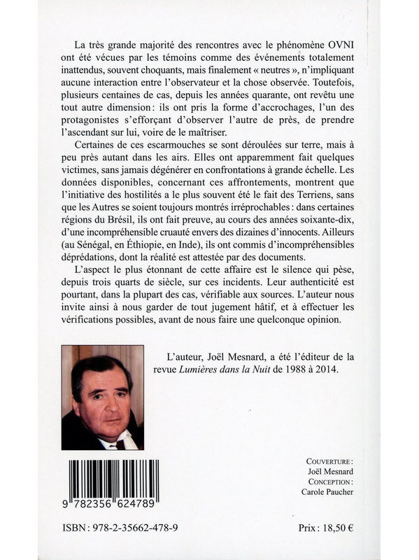 La très grande majorité des rencontres avec le phénomène OVNI ont été vécues par les témoins comme des événements totalement inattendus, souvent choquants, mais finalement ‘’neutres’’, n’impliquant aucune interaction entre l’observateur et la chose observée. Toutefois, plusieurs centaines de cas, depuis les années quarante, ont revêtu une tout autre dimension : ils ont pris la forme d’accrochages, l’un des protagonistes s’efforçant d’observer l’autre de près, de prendre l’ascendant sur lui, voire de le maîtriser. Certaines de ces escarmouches se sont déroulées sur terre, mais à peu près autant dans les airs. Elles ont apparemment fait quelques victimes, sans jamais dégénérer en confrontations à grande échelle. Les données disponibles, concernant ces affrontements, montrent que l’initiative des hostilités a le plus souvent été le fait des Terriens, sans que les Autres se soient toujours montrés irréprochables : dans certaines régions du Brésil, ils ont fait preuve, au cours des années soixante-dix, d’une incompréhensible cruauté envers des dizaines d’innocents. Ailleurs (au Sénégal, en Ethiopie, en Inde), ils ont commis d’incompréhensibles déprédations, dont la réalité est attestée par des documents. L’aspect le plus étonnant de cette affaire est le silence qui pèse, depuis trois quarts de siècle, sur ces incidents. Leur authenticité est pourtant, dans la plupart des cas, vérifiable aux sources. L’auteur nous invite ainsi à nous garder de tout jugement hâtif, et à effectuer les vérifications possibles, avant de nous faire une quelconque opinion.Mesnard Joël Voir moins