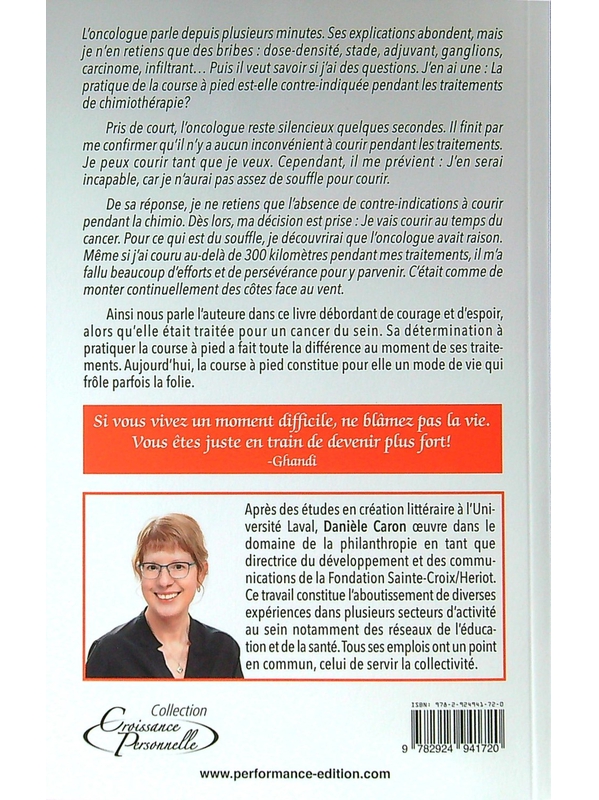 L’oncologue parle depuis plusieurs minutes. Ses explications abondent, mais je n’en retiens que des bribes : dose-densité, stade, adjuvant, ganglions, carcinome, infiltrant… Puis il veut savoir si j’ai des questions. J’en ai une : la pratique de la course à pied est-elle contre-indiquée pendant les Voir plus