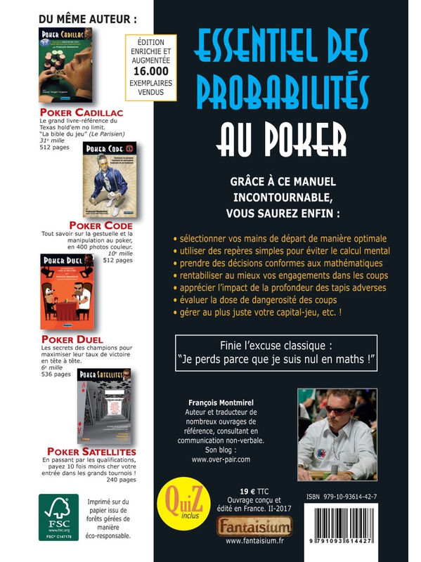 Finie l’excuse classique : “Je perds au poker parce que je suis nul en maths !” Grâce à ce manuel devenu incontournable, vous saurez enfin : sélectionner vos mains de départ de manière optimale , utiliser des repères simples pour éviter le calcul mental , prendre des décisions conformes aux mathémat Voir plus